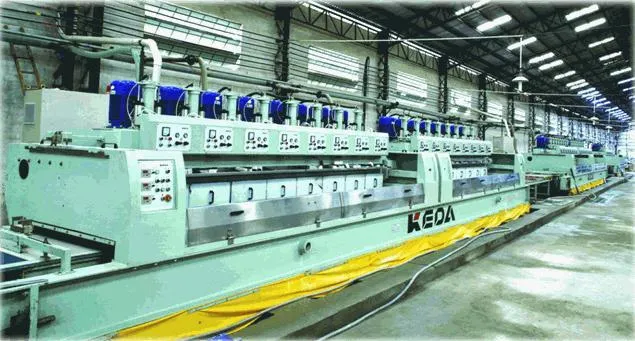 En Antovia Surfaces , Estamos equipados con lo último en tecnología y lo último en tecnología. Nuestro uno de los más preciado La posesión son los cabezales de pulido combinados de alta eficiencia Kd268c. Abrasivo Con Un Largo Oscilación, Los Cabezales De la línea de pulido asegúrese de que cuando la baldosa entre en contacto en línea recta garantice un óptimo Resultados de enfriamiento y molienda. Para el giro del travesaño, una transmisión de doble reductor es estable y confiable. el La calidad del acabado de las baldosas está garantizada por esta máquina que promete una baja tasa de repulido.